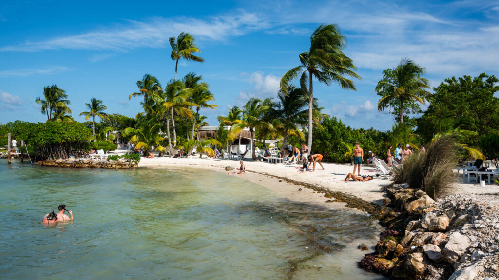 For sunset there is only one place to be, and that is at Stingray Beach. Late at night, all of the stingrays come into the shallow water, and you can see them all swimming around right on the beach. From here, you also have the best view out across the docks and swings to the sunset behind.