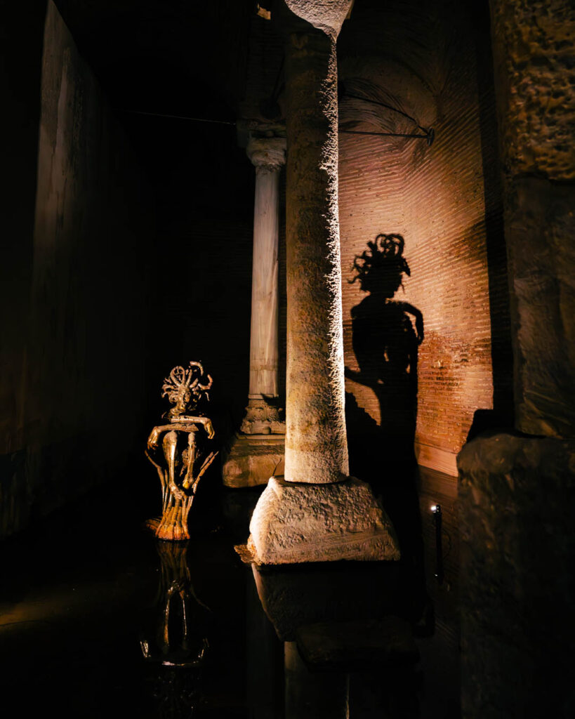My favorite attraction in Sultanhamet, and probably one of the lesser-known, was the cistern basilica. This is one of many huge underground water reservoirs which were constructed underneath Istanbul, then Constantinople, to serve as a direct water supply to the palace and surrounding area in the event of a siege or drought; capable of holding up to 80,000 cubic meters of water. These cisterns are unique to Istanbul and something that, to my knowledge, you cannot see anywhere else on earth, or certainly not to this scale at least. The Basilica Cistern is the most famous in Istanbul because of its proximity to other attractions and the installations of modern art that have been added in recent years.