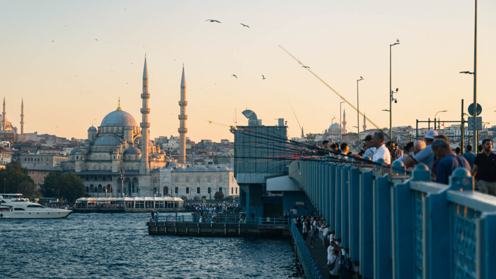 After leaving the palace, we headed down into Karaköy to visit the famous Galata Tower; I’d recommend getting the tram to the Tophane tram stop rather than the Karaköy stop; while it is still an uphill walk to the tower from here, it is nowhere near as steep as the walk up from Karaköy. We chose not to go up the tower itself but instead take in the views from the Anemon restaurant, a gem I found on TikTok. This restaurant is located inside a hotel just next to the Gakata Tower and is open to the public. While the Galata Tower has a 30 euro entrance fee, you can enjoy the view from this restaurant, just a few meters shorter, for free, and while I’m usually not a fan of girl math, the money saved on not going up the tower certainly felt like a discount on our dinner next door. To finish the day, we walked down to the Galata Bridge for a stunning sunset over the city, watching the locals fish over the river as the city switches from sunlight to streetlights.